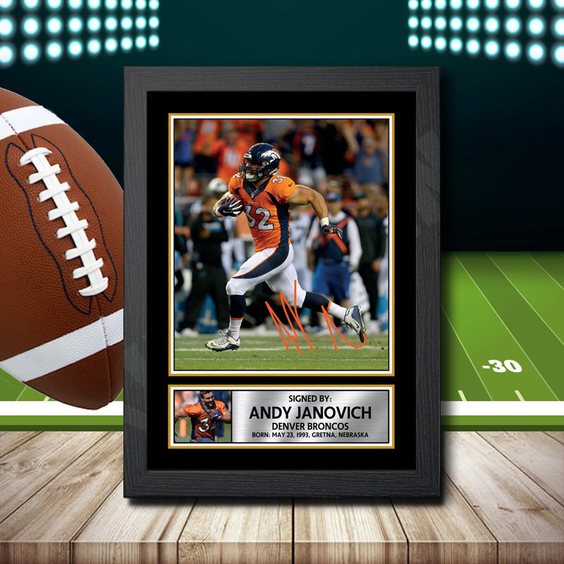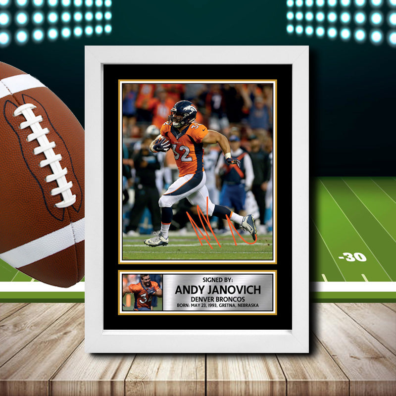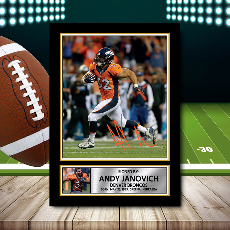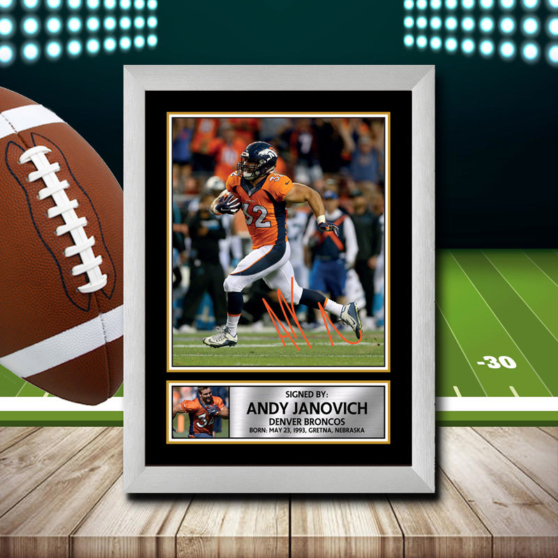-Andy Janovich Signed Merch Autographed NFL Star Display Poster Print