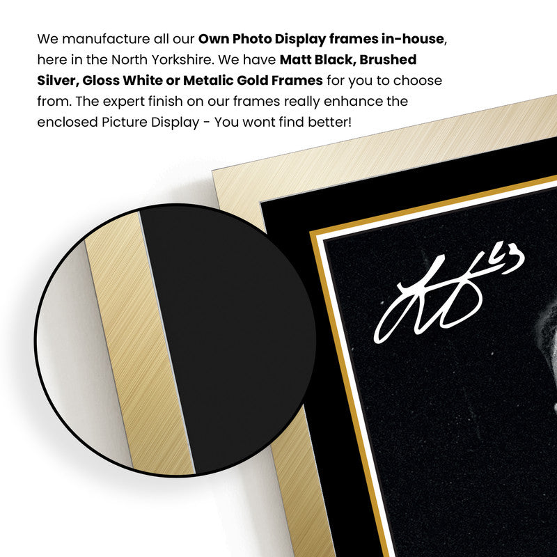 The image is printed on high-quality 350gsm satin paper, featuring a crisp action shot and a realistic digitally printed autograph. Available in five sizes and four stylish frame options, it’s a standout piece for home decor, fan rooms, or office spaces