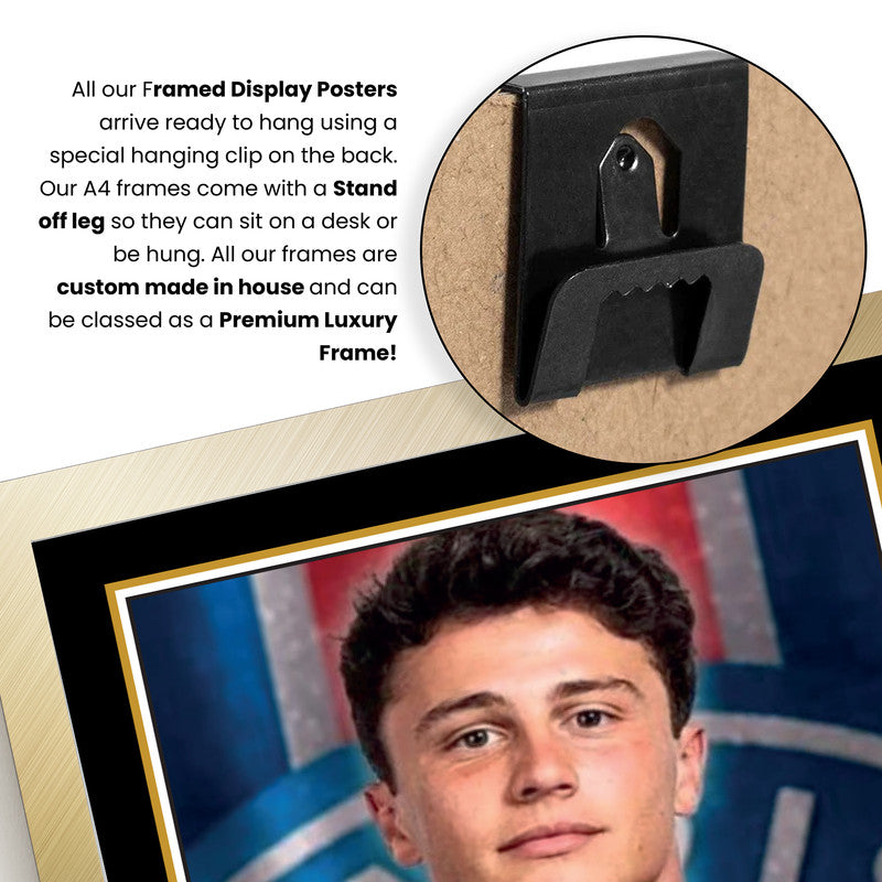 Celebrate the talent of João Neves with this stunning autograph-style poster print – an ideal addition to any football fan’s collection. Printed on high-quality 350gsm satin paper, the poster includes a lifelike replica autograph and a vibrant action photo of Neves in his Benfica or Portugal kit.
