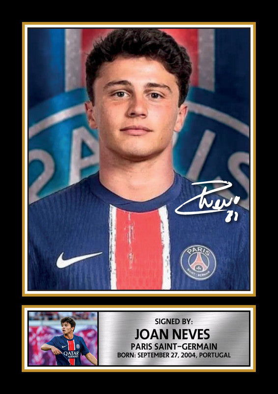 • João Neves Autograph Print – Features a digitally reproduced signature of the Benfica & Portugal rising star.