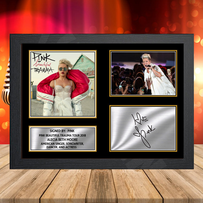 -Pink Beautiful Trauma Tour 2018 Signed Merch Autographed Music Landscape Star Display Poster Print