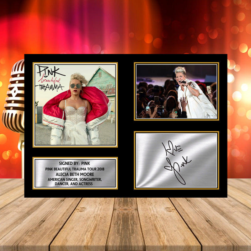 MUSIC-LANDSCAPE Star PINK BEAUTIFUL TRAUMA TOUR 2018 Autograph Print