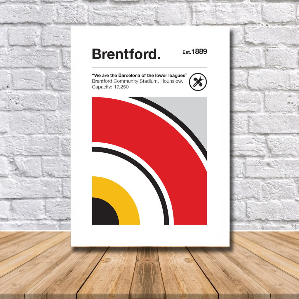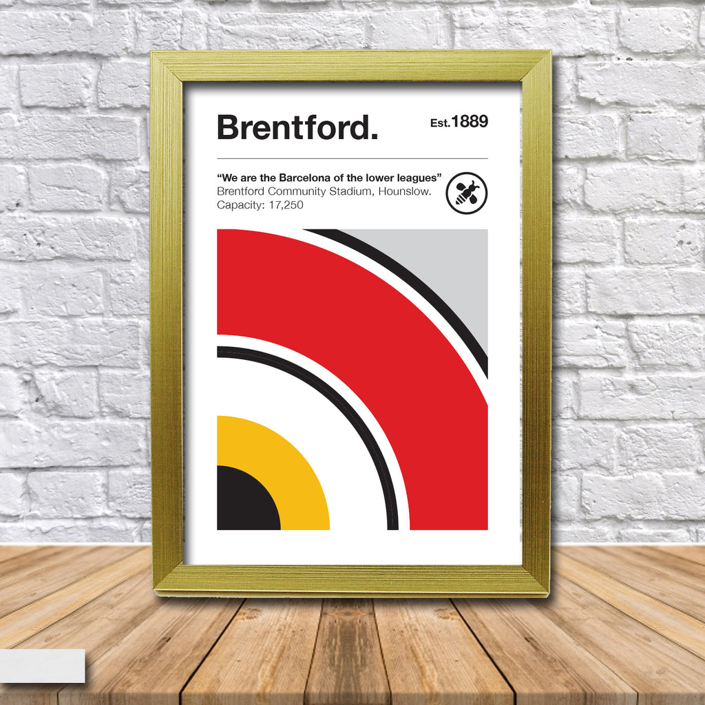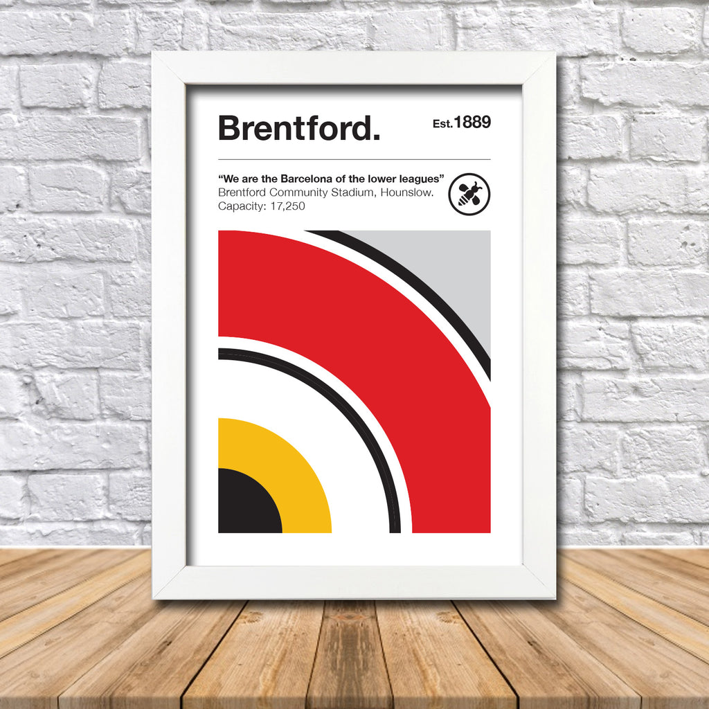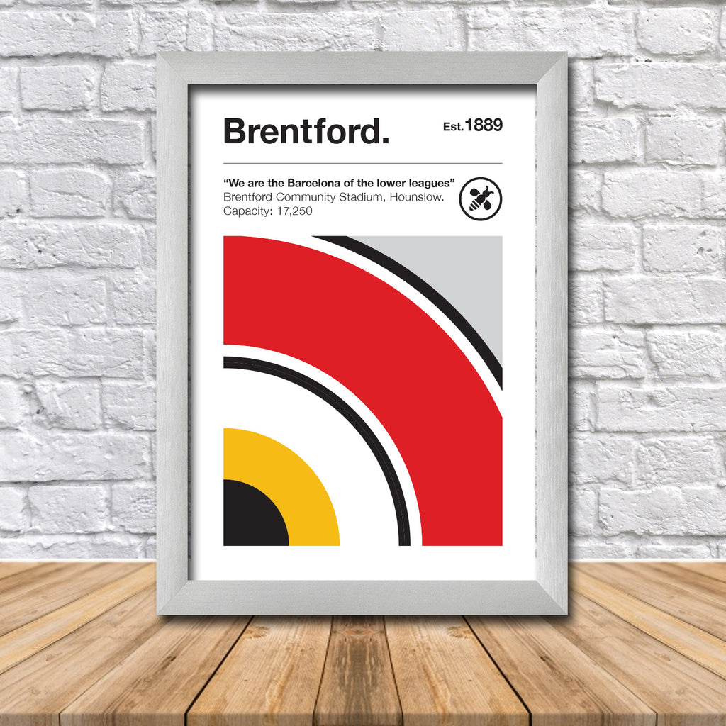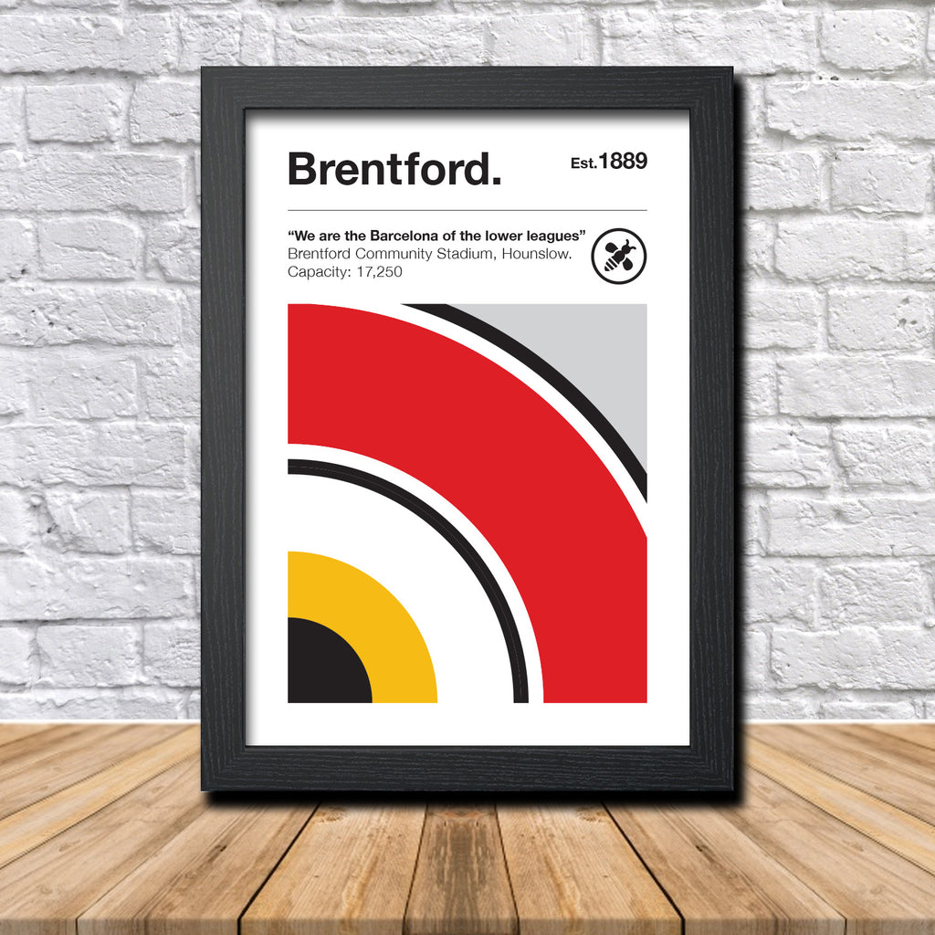 Signed Team Player Prints Retro Brentford Club Colours Brentford Fan Championship Football Crest Poster Print