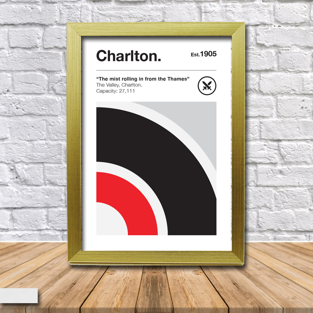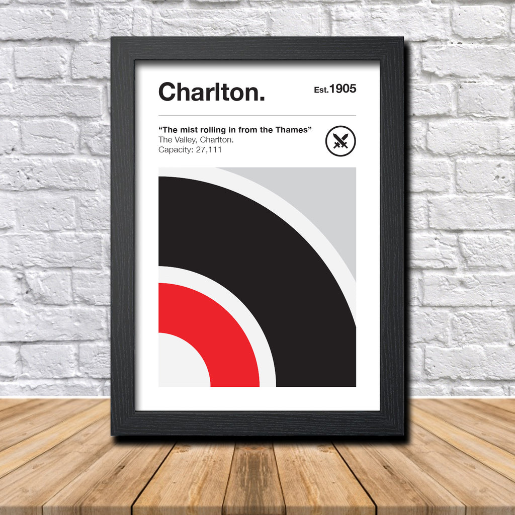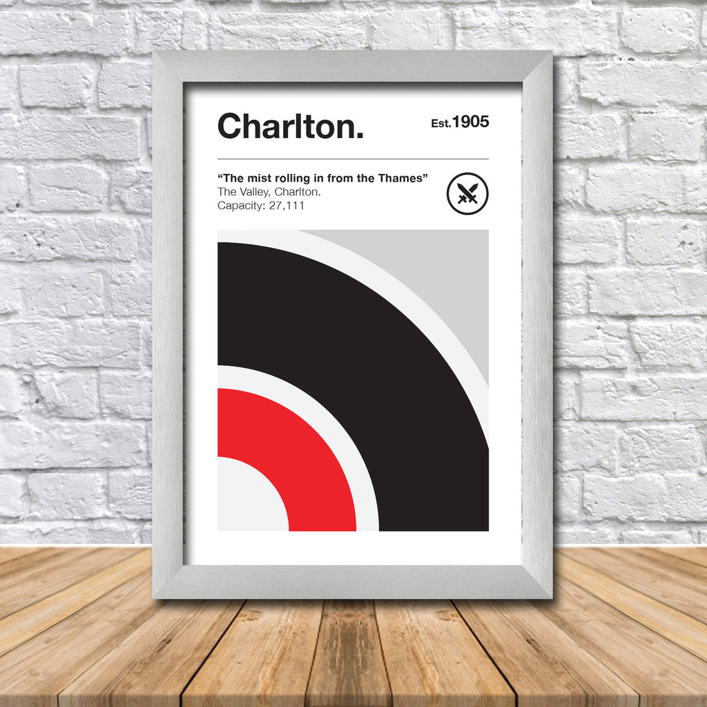 Signed Team Player Prints Retro Charlton Club Colours Charlton Fan Championship Football Crest Poster Print