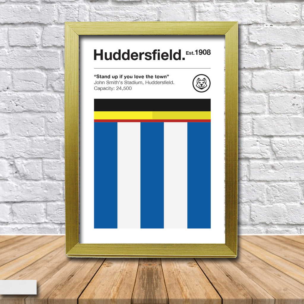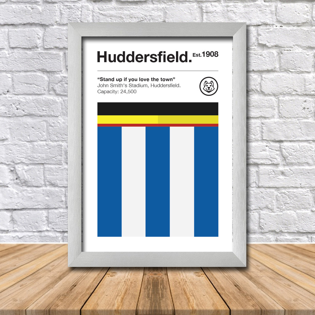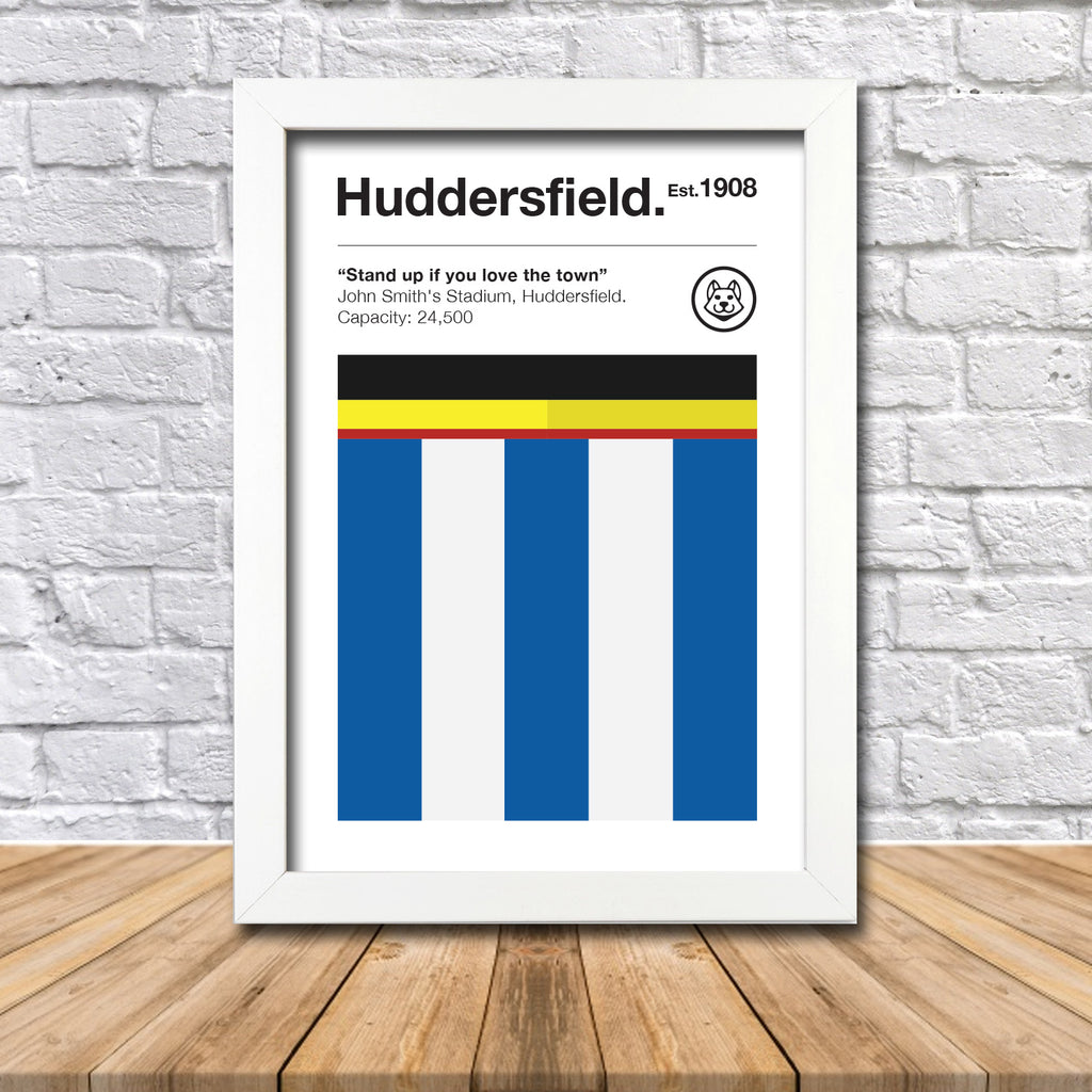 Signed Team Player Prints Retro Huddersfield Club Colours Huddersfield Fan Championship Football Crest Poster Print