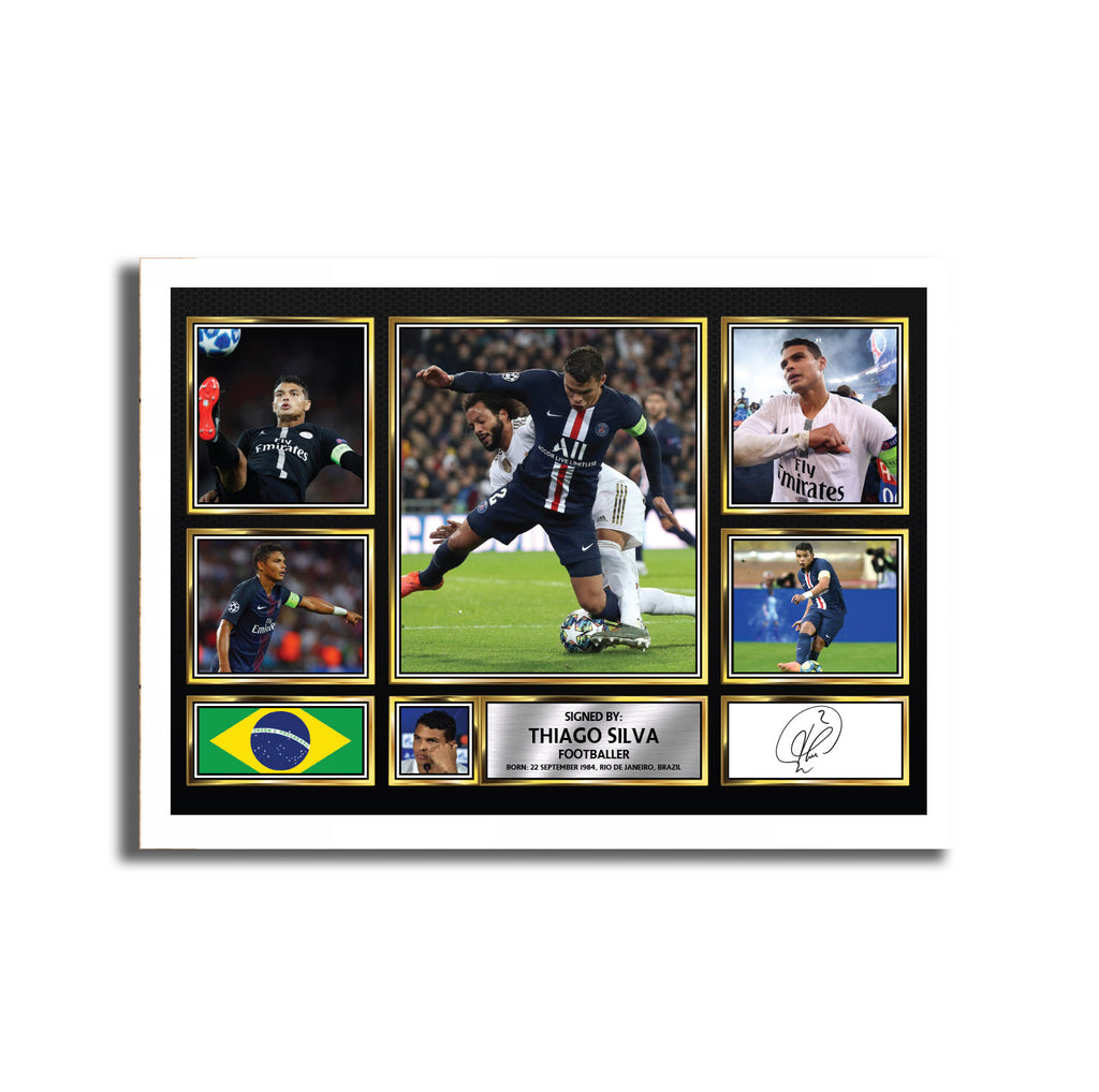 Signed Footballer Posters, Signed Footballer Prints Thiago Silva Football Gift MC1688 Autographed Star Poster Print Merch Gift