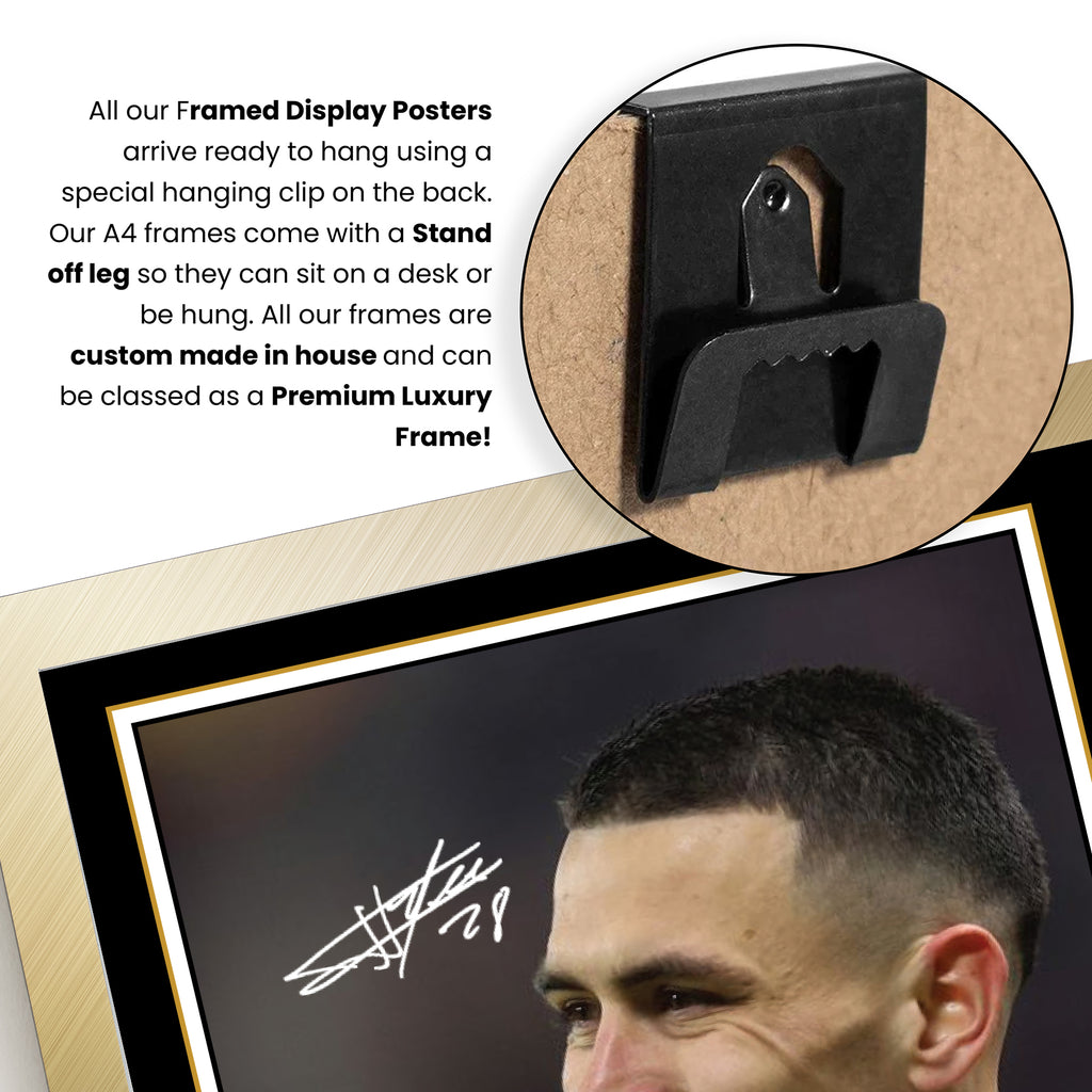 Celebrate the artistry and ambition of Enzo Le Fee, one of football’s rising midfield stars, with this exclusive signed and framed photograph. Captured in his Sunderland A.F.C. kit, this premium collectible features Le Fée’s authentic autograph, a secondary portrait image, and a commemorative plaque with his birthdate and birthplace.