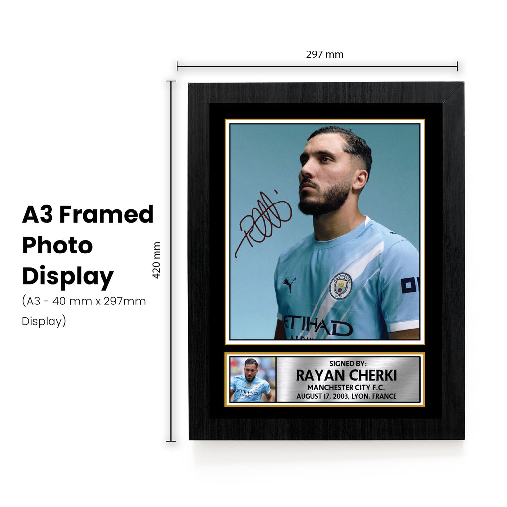 Rayan Cherki Signed Autograph Poster Print – Manchester City F.C. Playmaker – Soccer Memorabilia Gift for Fans