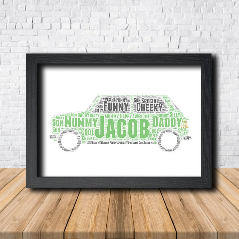 A High Quality framed or un-framed Personalised Print. They are High-Quality Prints in Full Colour and framed in Black, Silver, White or Gold Frames. You can even choose if you want your print in A3, A4 or as a card.