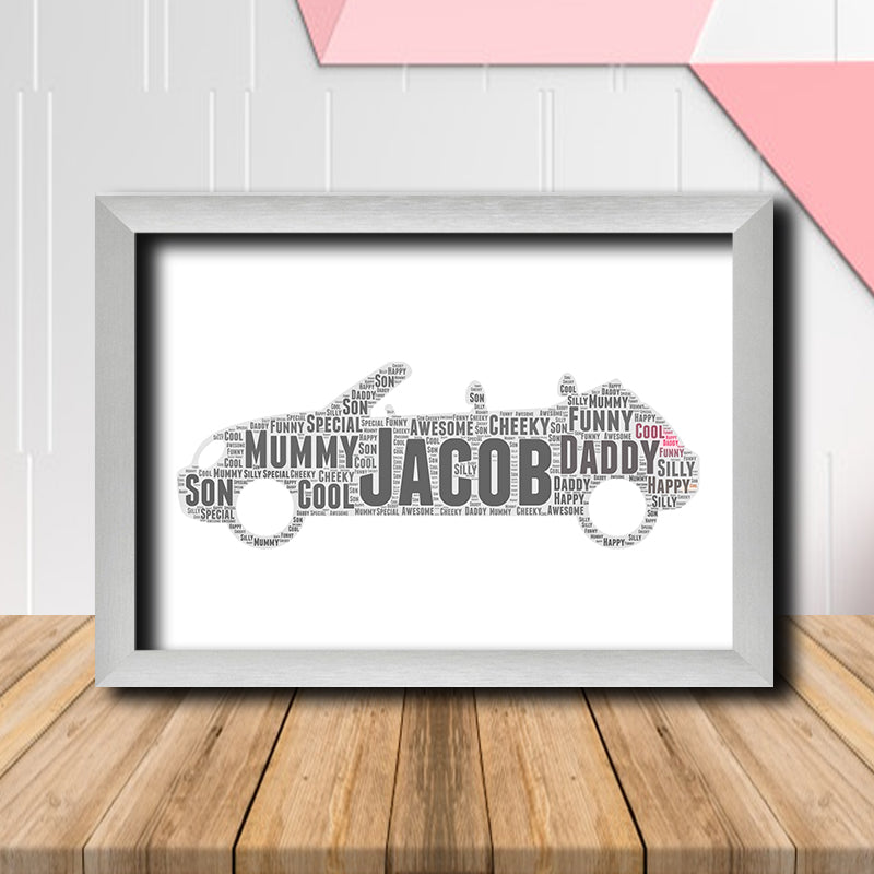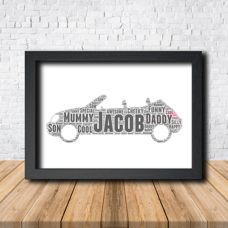 A High Quality framed or un-framed Personalised Print. They are High-Quality Prints in Full Colour and framed in Black, Silver, White or Gold Frames. You can even choose if you want your print in A3, A4 or as a card.