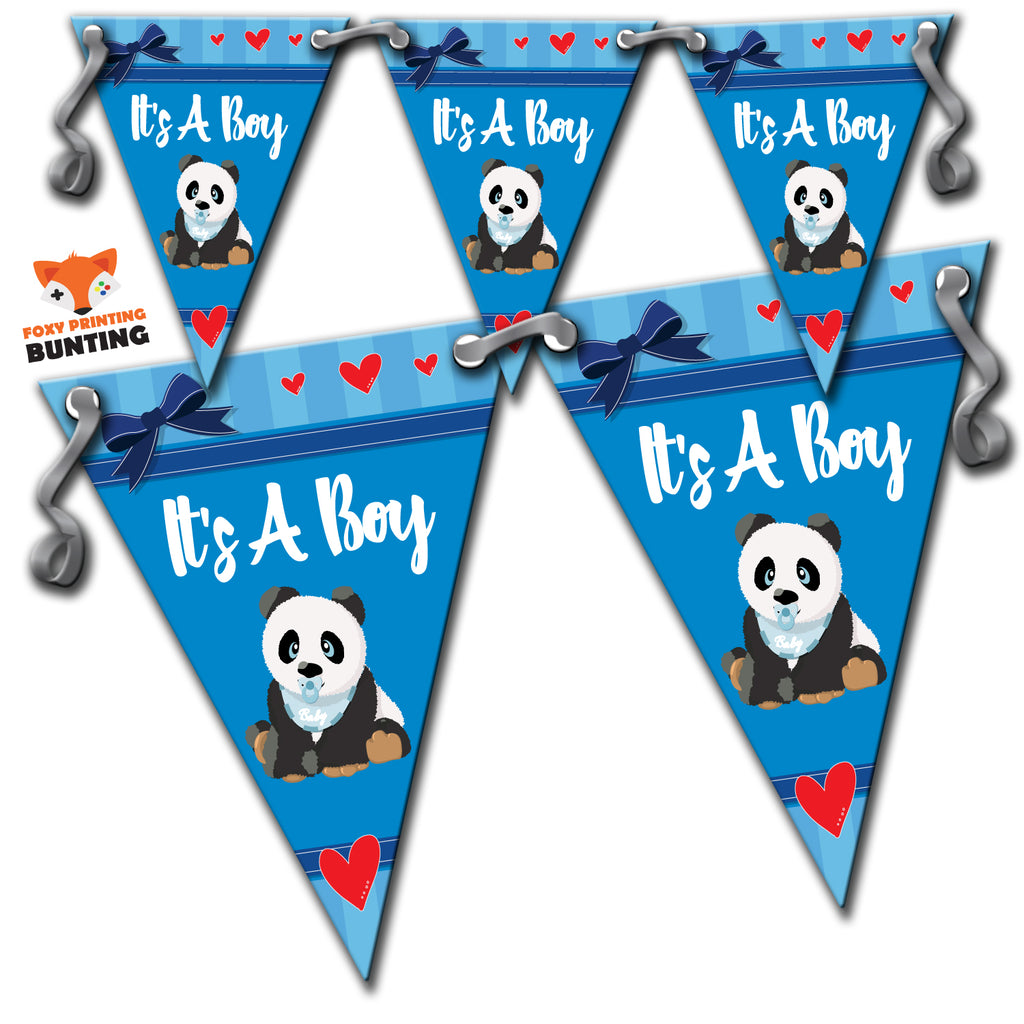 B30 Blue Its A Boy Bunting Panda Personalised Custom Bunting Premium Party Decorations (Standard Bunting (14.8cm X 21cm))