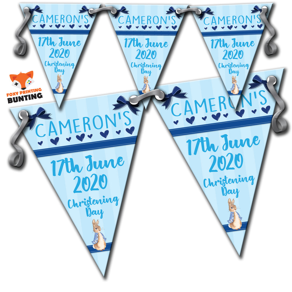B62 Peter Rabbit Christening Bunting B Personalised Custom Bunting Premium Party Decorations (Standard Bunting (14.8cm X 21cm))